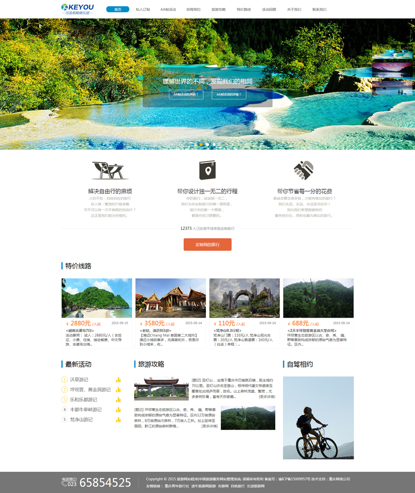 Project Description 6人游旅行网隶属于北京六人游国际旅行社有限公司。打造“为爱出行”:专为家庭,朋友,情侣间的旅行,提供私家小团精品游。打造高品质的旅行产品,解决传统跟团游和自由行存在的问题,将旅行服务做到臻善臻美。 Official website address 南川http://www.keyoujq.com I want to share