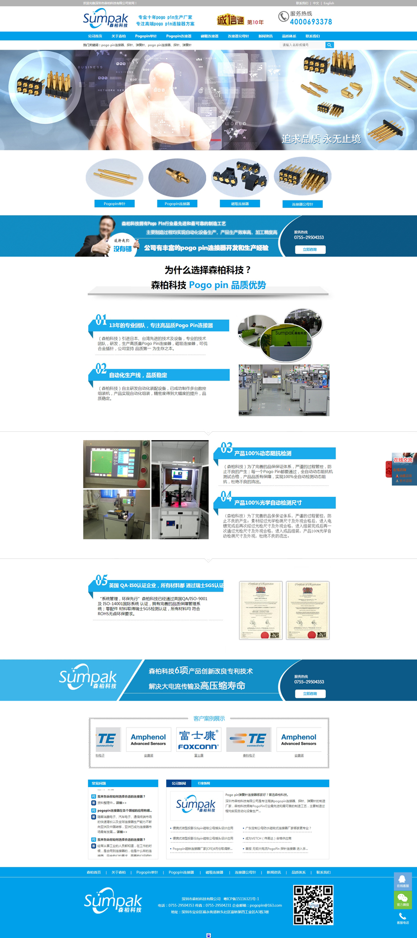 Project Description 深圳市森柏科技有限公司是专注高端pogo pin连接器、探针、弹簧针的制造厂家,森柏科技拥有Pogo Pin行业最先进和最可靠的制造工艺,主要制造过程均实现自动化设备生产,产品生产效率高,加工精度高,重要检测过程均采用自动化快速识别系统,大大降低了人为操作失误的风险,极大的提升了检测效率,工艺过程得到极大的改善和满足。因此产品质量和稳定性获得巨大突破。 Official website address 南川http://www.zgsumpak.com I want to share