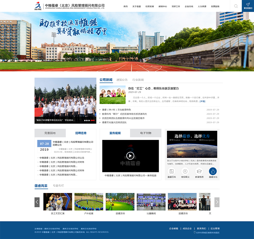 Project Description 中精蕴睿(北京)风险管理顾问有限公司2013年,现有教职工及各科目教育专家80多人,致力于为各中小培训学校(机构) 提供教育相关政策咨询与指引、法律服务、人才引进与培养、师资队伍建设与培训、教学教研与学科创新、市场营销企划、文化 理念塑造与品牌输出的专业化教育管理全方位的综合服务。 Official website address 南川http://in-re.com/ I want to share